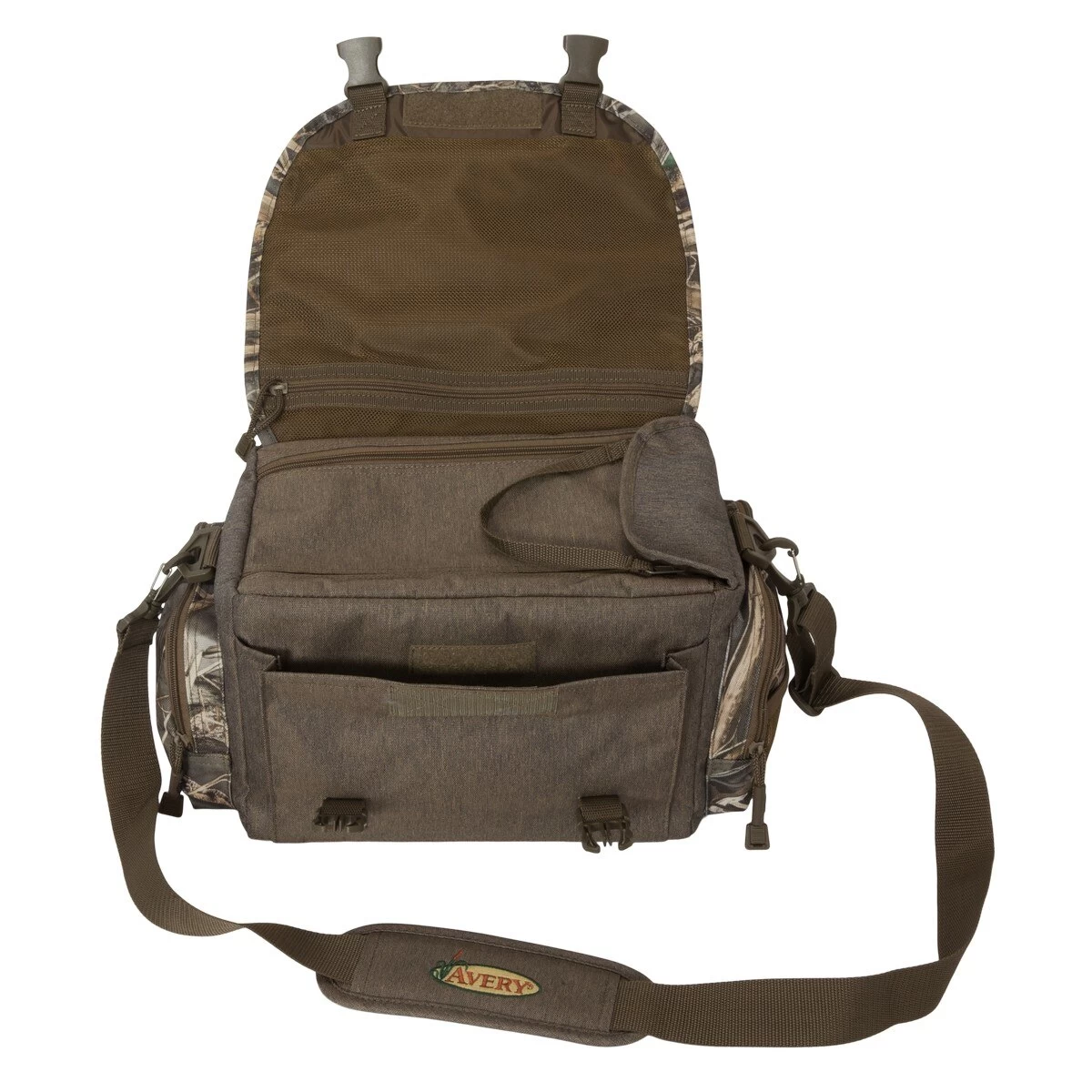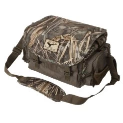 This bag will fl oat up to 12 boxes of 3 inch magnum 12-gauge shotgun shells. Constructed of durable 900D DuraMax water-resistant fabric. Features 6 separate storage compartments including two zippered side pockets, large main compartment, interior valuable pocket, front bellow pocket with Velcro™ closure and zippered lid compartment, closed cell foam on the walls and bottom offer shock-proof protection, adjustable nonslip rubberized shoulder pad with and padded top carry handle. Measures 17”W x 10”D x 10”T. Available in Mossy Oak Bottomland, Realtree Timber and Realtree Max-5.
