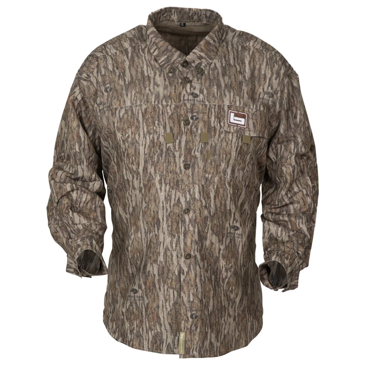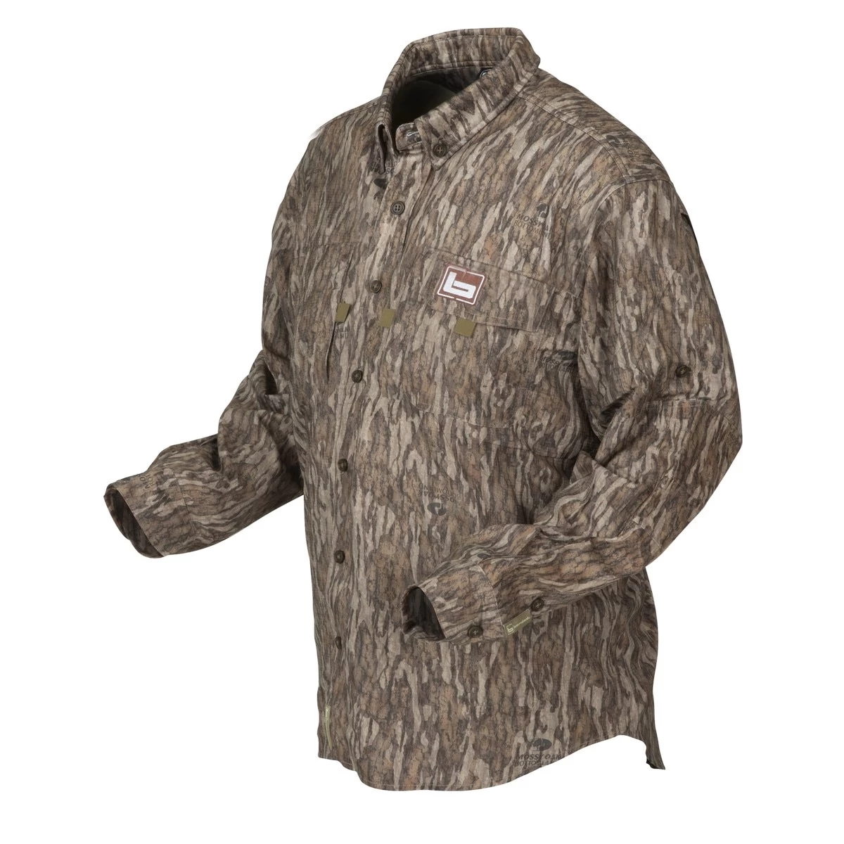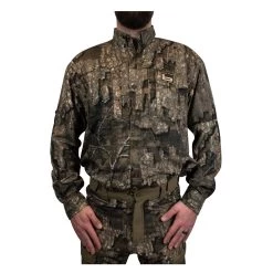 Technical shirts built for mild and warm weather. Highly technical, this shirt is constructed of a four-way stretch, moisture-shedding (DWR) abrasion-resistant RipStop face fabric and packed full of features like: rear cape venting that provides perfect airfl ow, articulated shoulders that allow for full-range movement, a YKK zippered chest pocket on right side that offers secure storage, a magnetic closure chest pocket on left for easy access to gear, reinforced water-resistant elbows and forearm, and button tabs to keep rolled-up sleeves in place. Whether your early-season bird hunting or chasing gobblers in the Spring— this technical hunting shirt has you covered. Available in lightweight and midweight options.
