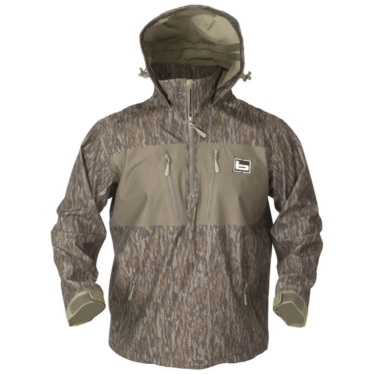 The Banded waterproof pullover combines the latest fabric technology with the most scientifically advanced waterproof and breathable laminate around, our proprietary S.H.E.D.S. technology(Super Hydrophobic Evaporative Development System). Features include zippered chest and hand pockets with YKK weather-resistant protection. This pullover combines performance with the comfort of soft-shell with stretch outer fabric, stretch cuffs, and an anatomical tai-adjust hood that seals out water and wind. FeaturesSHEDS waterproof breathable technology for rough conditions 100% waterproof seams shed water to keep you warm and dryHard shell twill outer fabrics durable and long-lastingAnatomical tai-adjust hood keeps weather out and heat in