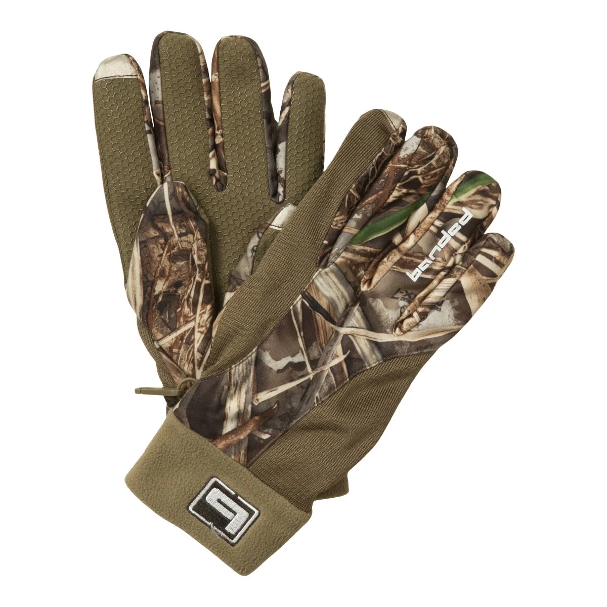 A lighterweight glove to break the chill while offering supreme functionality. Featuring a tech touch print fi ngertip that allows use of touchscreen devices. Vented panels increase stretch and breathability. Honeycomb non-slip-grip on palm and fi ngers. | Color: Mossy Oak® Bottomland™, Realtree® Max-5™ | Sizes: M-2XL