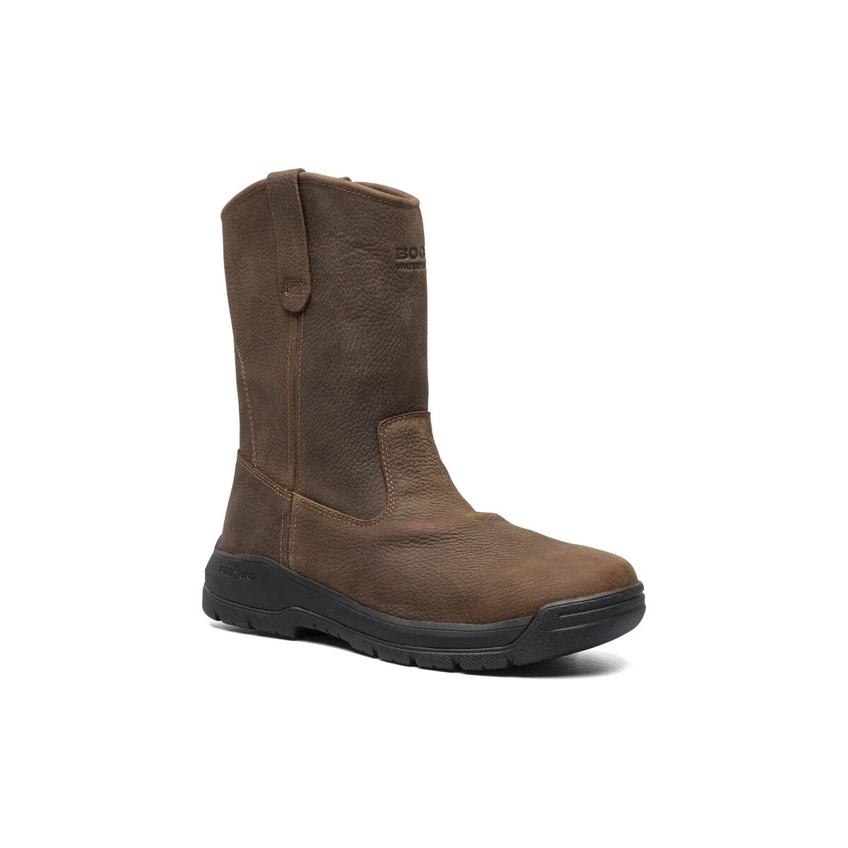 Bogs Bedrock Wellington II 13”• 100% Waterproof leather upper• Rebound cushioning provides all day comfort and energy return• DuraFresh natural bio-technology activates to fight odors• Bogs Max-Wick evaporates sweat away to keep your feet dry• 90° 5/8” heel• Circumference: 16”• Seamless heel-outsole construction for enhanced durability• Stabilization plate in footbed for stability and support• BioGrip outsole combines ASTM standard slip and chemical resistance• Flex Width insole adapts to foot Width