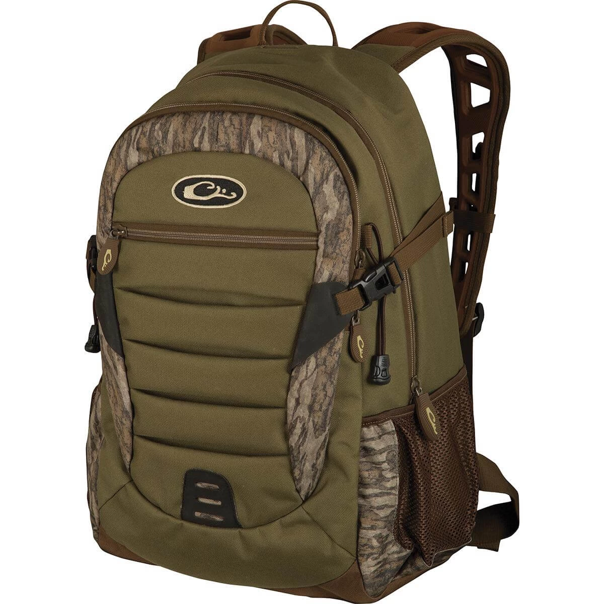 For those that want the comfort of a backpack with the optimal storage size of a blind bag, our new Drake Daypack is the choice for you. With both casual and hunting applications ranging from the classroom to the field, the Drake Daypack is great for storing essential items in a more compact design. Small 11W x 18 H x 6.5 D (inches)Large 12W x 20 H x 7.5 D (inches) Materials Rugged HD2 material Padded backing Features Large zippered storage area Hydration pouch pocket Hydration tube pocket EVA shoulder straps Chest strap Waist strap Front zippered pocket 2 side mesh pockets 2 water bottle holders