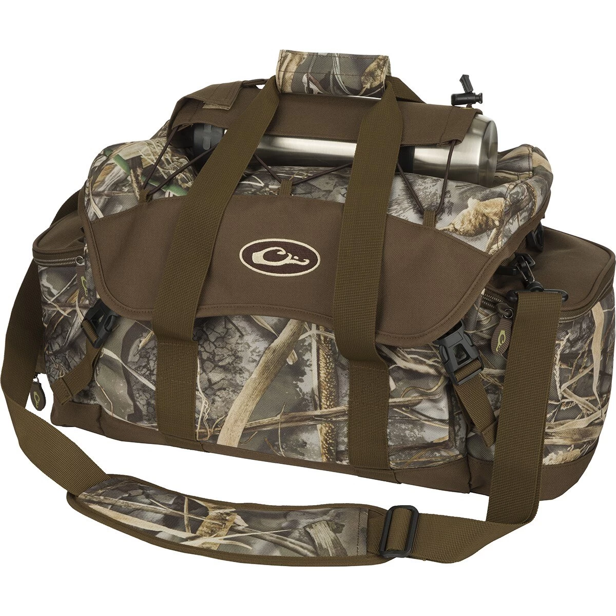 Both sizes of the Blind Bag 2.0 are loaded with pockets and features for organizing your gear so you can find items quickly when it matters. The Large bag has 18 pockets and the X-Large bag has 20 pockets. The main storage compartment is protected by 2 liners. Constructed with a seam-welded vinyl internal liner overlaid with a vinyl organizer, Drake has taken extra steps in creating a waterproof compartment from the bottom to the zipper.Dimensions:Large: 18 Width x 11 Height x 10 Depth (inches)X-Large: 20 Width x 12 Height x 11 Depth (inches)FeaturesAdjustable strap with HD2 shoulder padImproved zipperImproved durable hardware2 side zippered shell pocketsOuter face pocket with elastic shell/choke tube dividers18 pocket vinyl organizer (Large)20 pocket vinyl organizer (X-Large)See-through map pocketThermos/jacket sleeve on topAdjustable gun case loopsProtective sunglass holderPlease be aware that Customized items will take longer to process. Please allow for 7-10 business days to have your customized item engraved or embroidered. We’re sorry but personalized items cannot be returned unless the item is defective. Once placed your order cannot be cancelled. Please enter your info carefully and double check it in your shopping cart. Thank you!