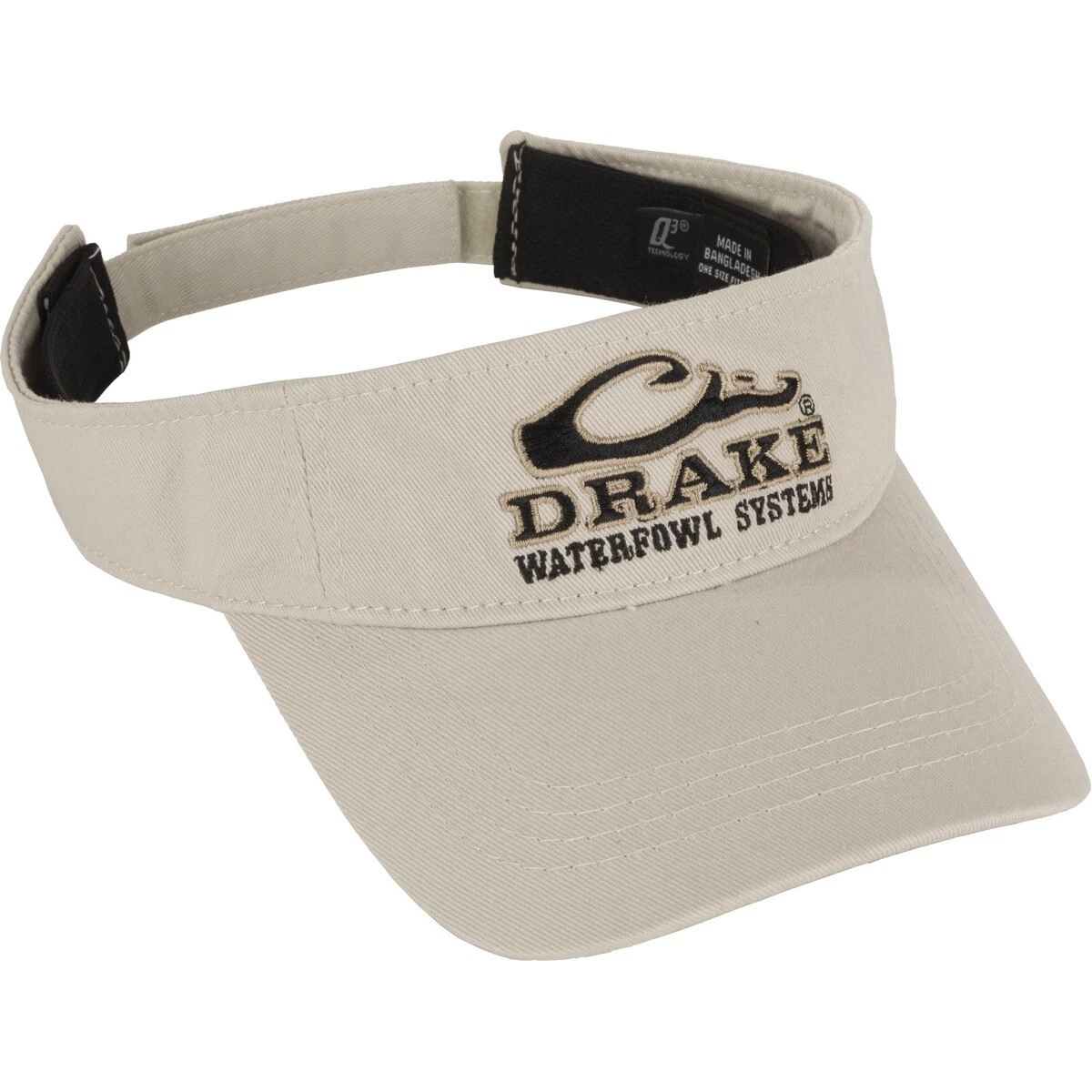 Low-profile visor with Drake Waterfowl Systems embroidery on the front. Velcro back closure. Solid colors are 100% cotton. Camo colors are 100% polyester. One size fits most.MaterialsSolid colors are 100% cottonCamo colors are 100% polyesterFeaturesEmbroidered Drake Logo on frontLightly structured front panelsVelcro back closure