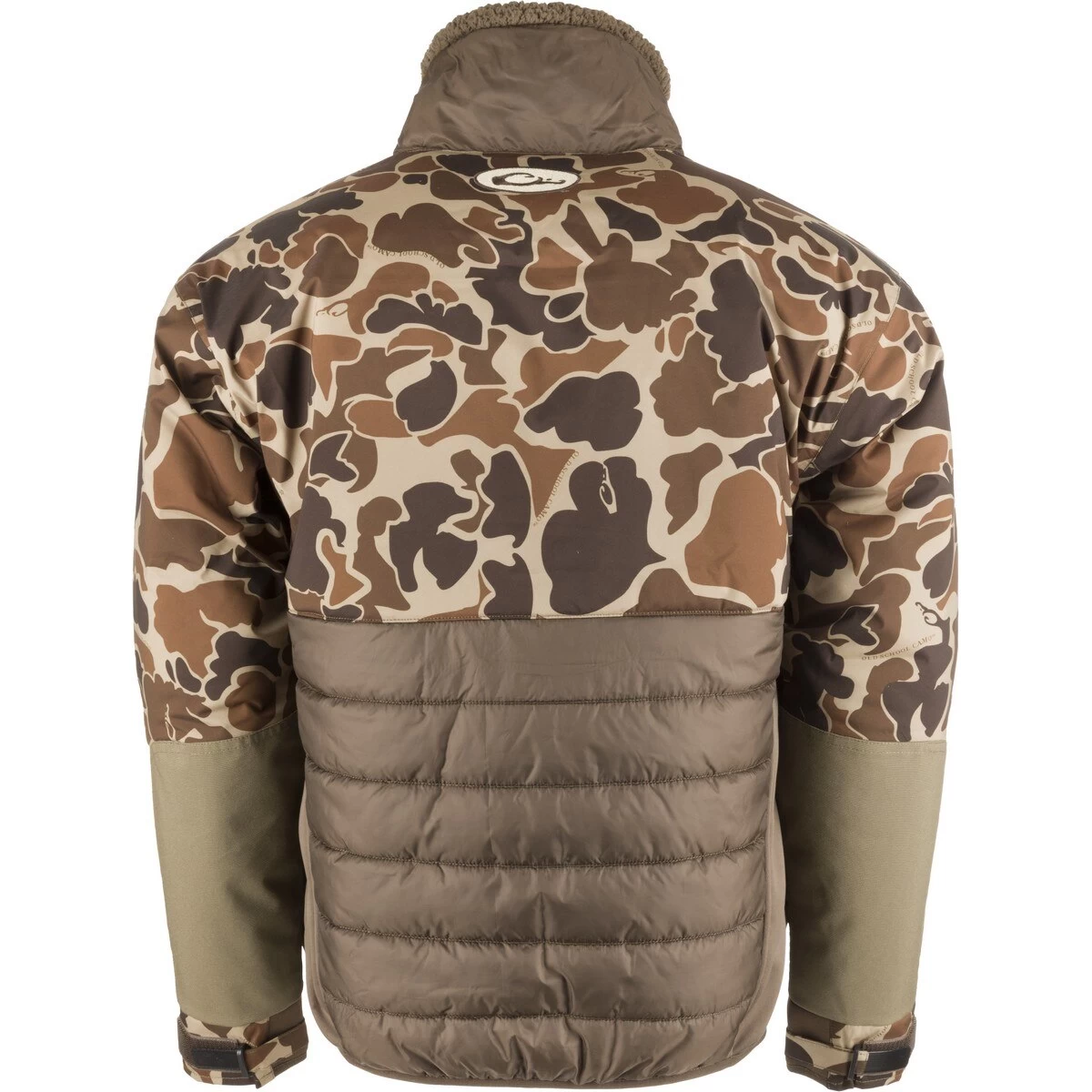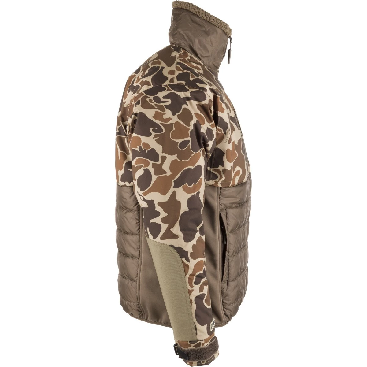 Our patented Eqwader™ technology revolutionized waterfowl clothing and has been a core piece of the Drake Waterfowl™ brand since day one. Just like the Earth’s equator is the dividing line between two distinct temperate zones, we noticed a similar dividing line on the body when you are wearing chest waders: cold, hostile conditions above the waders, and warm, humid conditions underneath the waders. Our unique combination of waterproof/breathable fabric on the sleeves and upper body matched with ultra-breathable fleece on the lower body introduced a whole new level of comfort and performance when wearing chest waders. The moisture-wicking polyester Double Down fabric on the lower torso is 15 times more breathable than the upper waterproof Guardian Flex™ material and works to prevent the build-up of perspiration and moisture vapor. These dual zones of protection keep you dry both inside and outside your waders.Materials • 100% waterproof/windproof/200 gram 100% polyester synthetic double down front and back • 100% Polyester high gauge interlock stretch breathable endurance fabric on lower sidesFeatures • 2 Time & Motion™ Magnattach™ call and whistle pockets • 2 Time & Motion™ zippered chest pockets • Adjustable neoprene cuffs • Reinforced HD3™ elbow/forearm protection