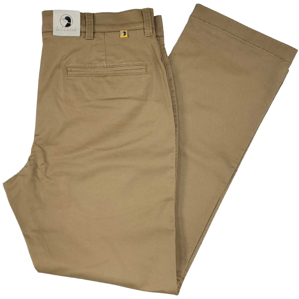Duck Head Gold School Chino Our “Gold School Chino” is today’s version of what brand savvy college students “discovered” over 25 years ago. Not overthought or overstated, today’s Duck Head remains true to its humble roots by producing garments of enduring quality, functionality, and value without compromise. Made from 7.5 oz. cotton rich twill and equipped with deep drill cloth pockets and industrial grade brass zipper, our design philosophy grows from a belief that the whole is greater than the sum of its parts. Details 7.5 oz. Twill Classic Fit (Not full. Not slim) Enzyme Washed Natural Drill Cloth Interior 13” Front Pockets Industrial Grade Antique Brass YKK No.5 Zipper Bound & Piped Interior Seams Signature “Z” Stitch Inside Fly Iconic Duck Head Gold Tab Label Laser Engraved Button on Back Left Pocket Locker Loop Coin Pocket 97% Cotton, 3% Stretch Imported Machine wash cold & tumble dry low D91005