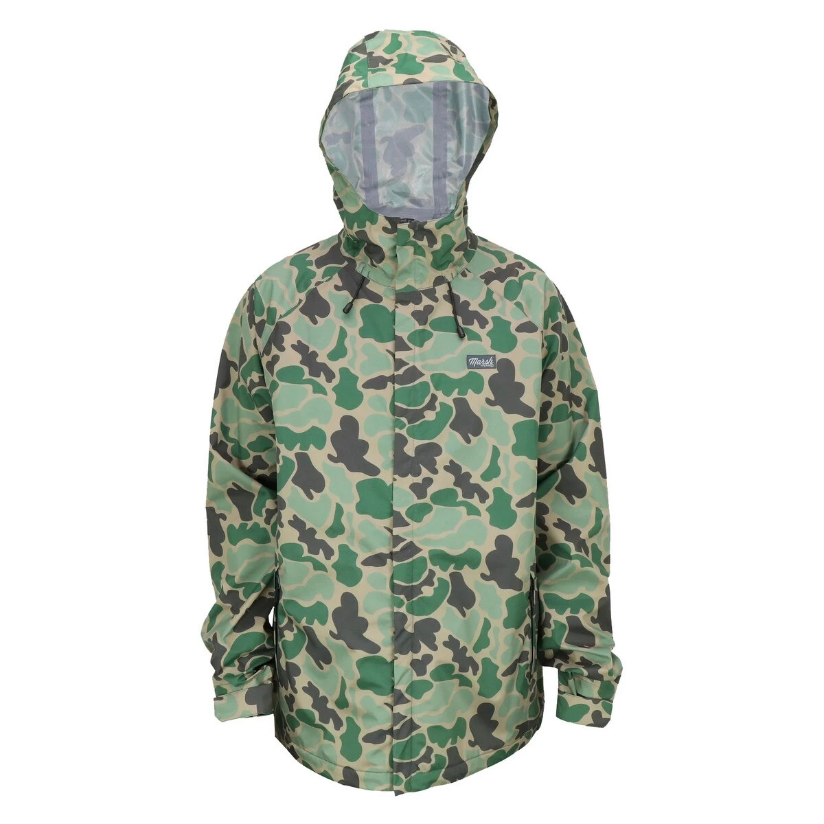 2.5 layer nylon waterproof jacket, dual hand pockets, adjustable hem and woven patch branding