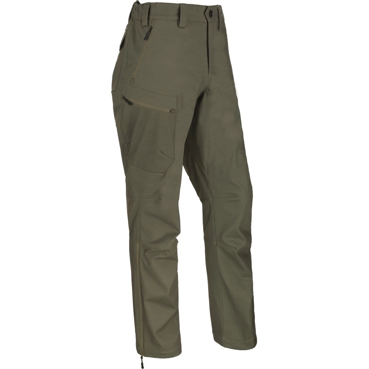 McAlister Microfleece Softshell Waterfowler’s PantsMATERIALS:• 100% Polyester wind-resistant brushed softshell face fabric• 100% Polyester microfleece lining • DWR – Durable Water Repellant TreatmentFEATURES:• Side-elastic waist for comfortable fit• Silicone grip waist band helps keep shirts tucked-in• 4-way stretch• Gusseted crotch• Lower leg side zips make these versatile pants easy to put on or take off over boots• Articulated knees for ease of movement• Zippered front slash pockets• Zippered front cargo pockets• Zippered rear security pockets