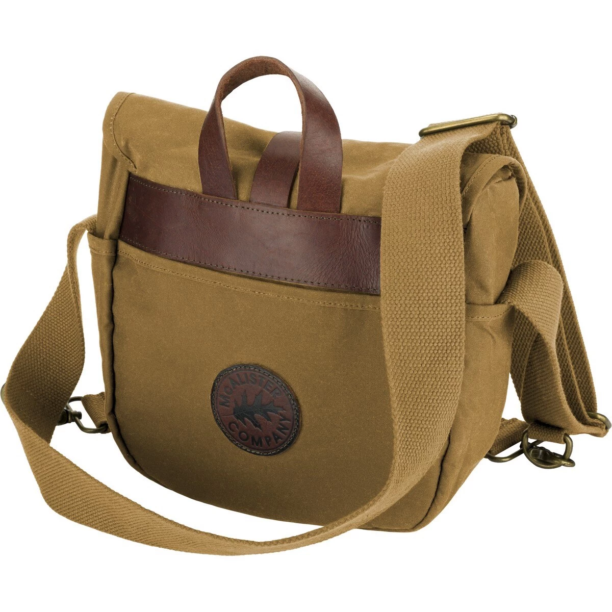 McAlister Wax Canvas Wingshot Ditty BagMATERIALS & FEATURES:• Large main compartment• Rear Utility compartment• Brass Clips & D-Rings• Leather Straps