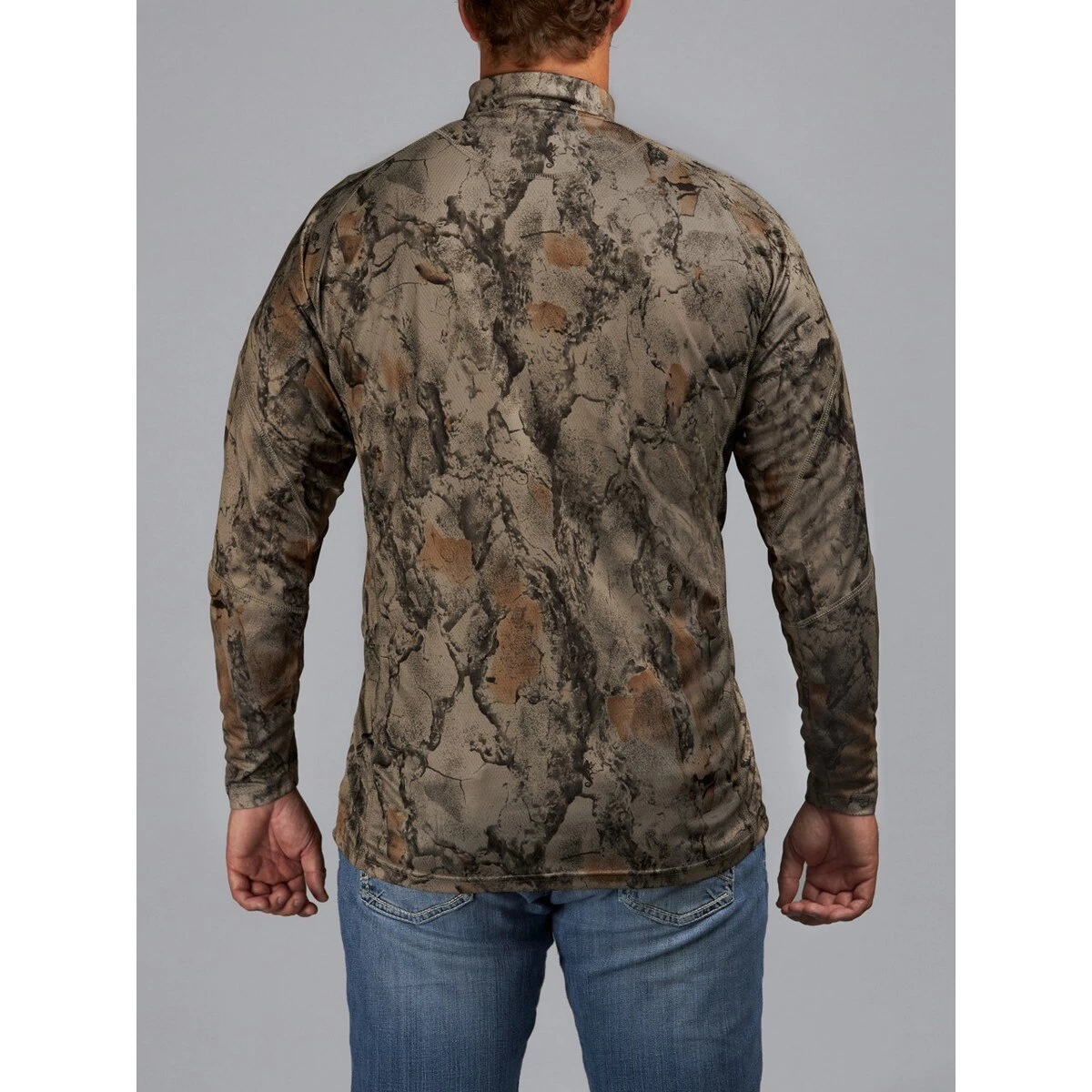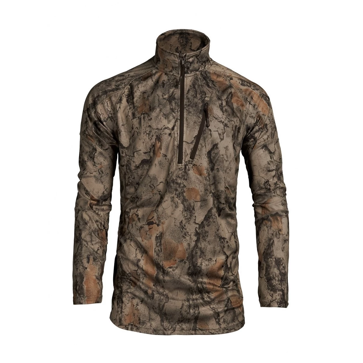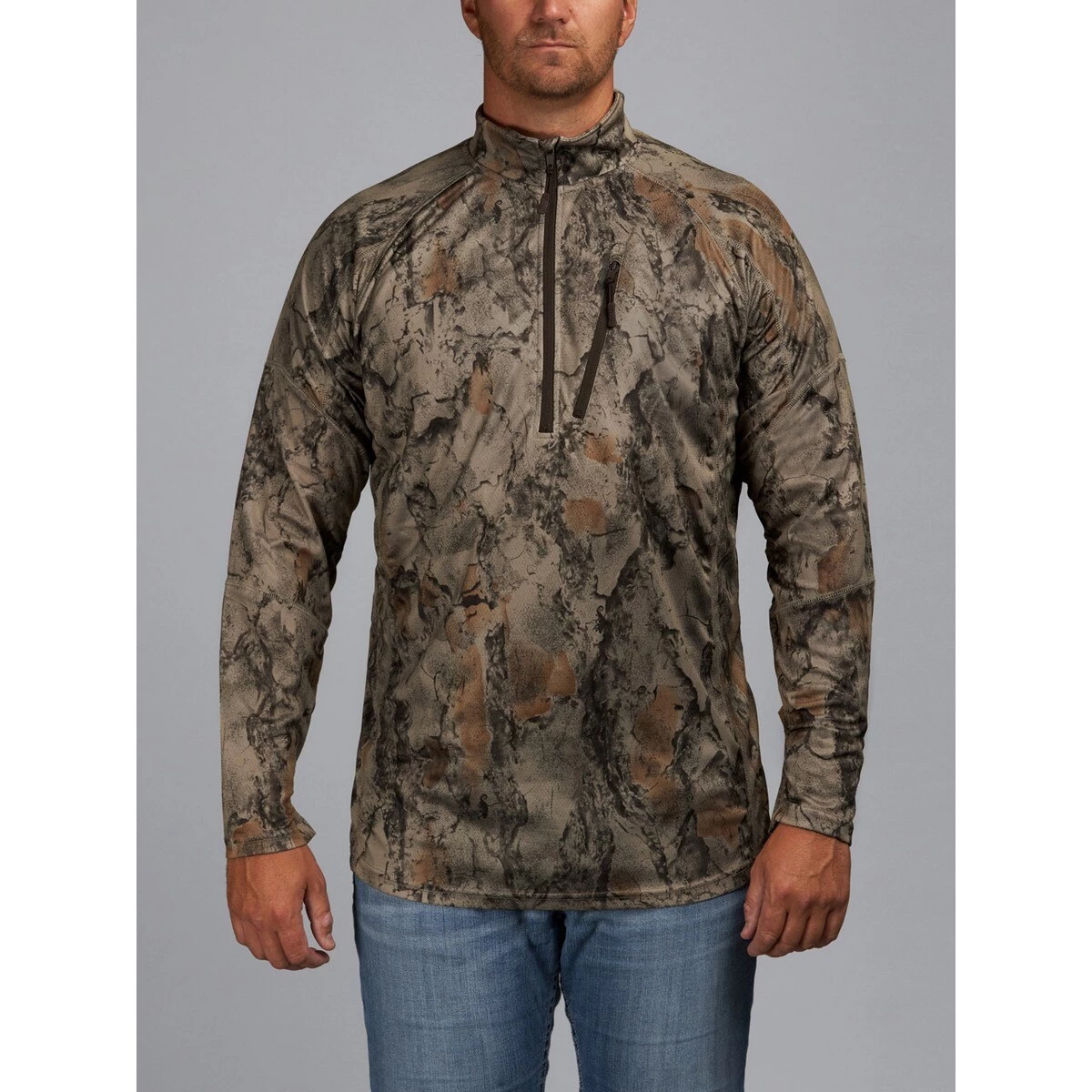 Natural Gear Base Quarter Zip Hunt ShirtThe Natural Gear 1/4 Zip Lightweight Camo Top is the perfect base layer hunting shirt that can be worn alone on warmer days and layered over when it is cooler. Built from ultra-light polyester material and integrated with a four-way stretch for maximum comfort and ease of movement in the field. This Technical Hunting Shirt is breathable and moisture-wicking to keep you dry and comfortable on those warmer hunts.Lightweight Stretch Polyester1/4 Zip DesignMoisture WickingZippered Chest PocketFixed Hem Waist and CuffsTaglessNatural Camo PatternFull-Cut