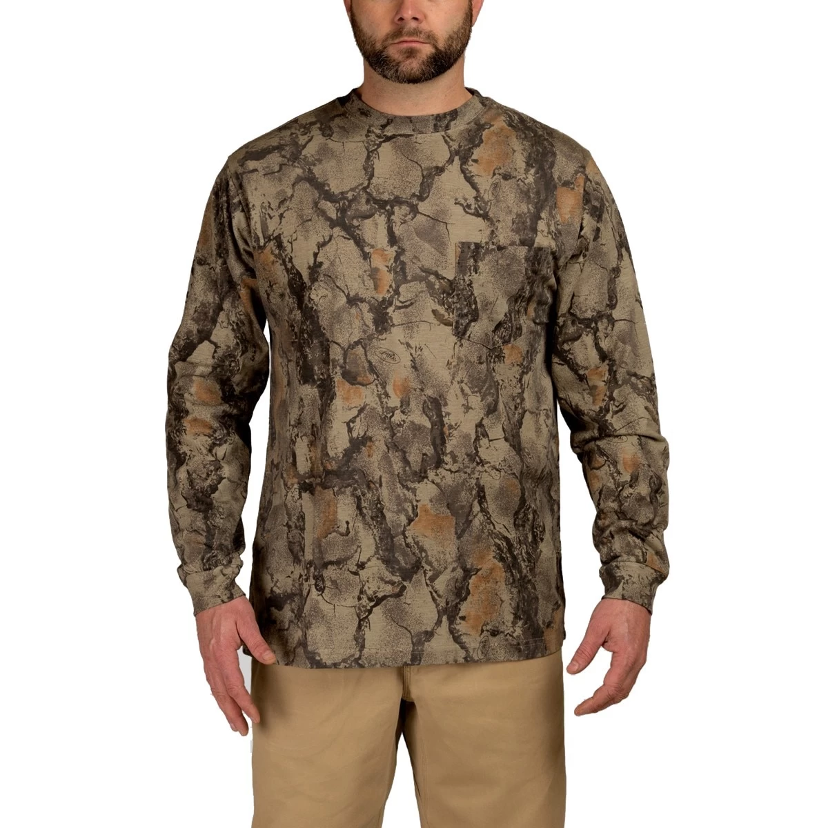 Natural Gear Deluxe Explorer Long Sleeve T-ShirtOur Natgear camo long sleeve hunting tee is a classic essential that should be in every hunter’s wardrobe. This shirt has been preshrunk to keep the fit true, has a soft pre-washed feel and our Natural pattern to keep you truly hidden in any terrain. Made of a cotton poly blend, this camo hunting tee is incredibly breathable, and the full-cut and tagless design make this long sleeve hunting shirt soft and comfortable. Equally as important, if you’re on a longer hunt don’t worry about packing extra camo clothing as this tee is anti-microbial and will last you well through those extended hunting camps. This lightweight camo hunting tee is a perfect choice for turkey hunting in the heat of spring or layer underneath for a cold weather deer hunt. With the quality you deserve and the best camo print out there, the Natural Gear Camo Long Sleeve Hunting Tee is a must-have piece to add to your line-up of hunting gear. Cotton Poly Blend Preshrunk Anti-Microbial Chest Pocket Ribbed Collar and Cuffs Tagless Natural Camo Pattern Full-Cut