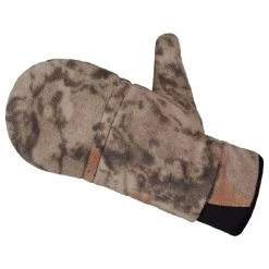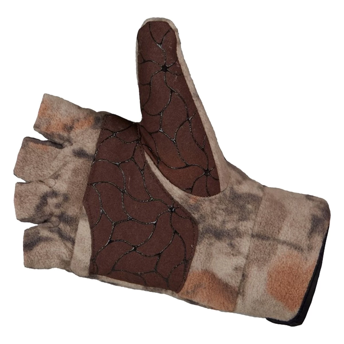 Keep your hands warm and ready with the Natural Stealth Glo Mitt. This glove is perfect for every hunting season. These half finger hunting gloves give you the agility of a glove with the comfort and warmth of a mitten. Additional features include magnetic fasteners on mitt flap for stealth, palm grip and wrist extender. Add a pair to your hunting pack today. 400g Fleece material Soft Sherpa Fleece Lining Palm Grip Wrist Extender Magnetic Closures on Mitten Flap Soft