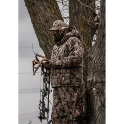 The Classic Windproof Fleece Parka is a must-have for frigid winter hunts. With a combination of 400g windproof microfleece and 150g quilted insulation, this camo hunting coat locks in your body’s natural heat and the microfleece keeps you stealthy and silent. Taking it a step further, this insulated fleece hunting jacket is designed with fully articulated elbows and shoulders and added stretch panels, to enhance mobility. However, that’s not all, NatGear has also added a waterproof poly tricot to the back and shoulders of this camouflage parka for when you end up hunkered down against something wet, waiting for that perfect shot. Additional features for this technical fleece hunting jacket include an adjustable and removable fleece lined hood with drawcord, hook and loop cuffs for a custom fit, and a large array of pockets to keep all your essential items close for easy access. The Wind Proof Fleece Parka is where exceptional performance meets quintessential comfort. This dynamic duo leads to longevity in the field and a ultimately, a better chance at a successful hunt. Check out the Winter-Ceptor Fleece Bibs to complete the perfect winter hunting suit. 400g Windproof Microfleece 150g quilted insulation Fully Articulated Elbows and Shoulders 2 Vertical Zippered Chest Pockets 2 Upper and Lower Handwarmer Pockets 2 Bellowed cargo pockets 2 Zippered Large Storage Pockets 2 Interior Storage Pockets Dual Drawcord for Custom Fit Hook and Loop Cuffs Removable Fleece Lined Hood Full-Cut