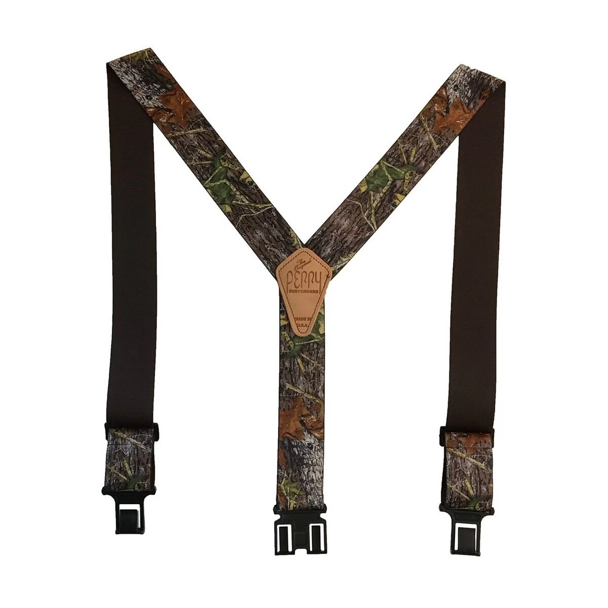 Perry Suspenders 2″ Camouflage 48″ in lengthPerry Suspenders are crafted with high-quality materials, making them built to last. Rather than traditional suspender clips that easily pop off, our suspenders use Perry Hooks which attach to your belt. Our design eliminates the fear of your suspenders not staying on all day long. Unlike traditional clip-on suspenders, Perry Suspenders won’t come off until you take them off!