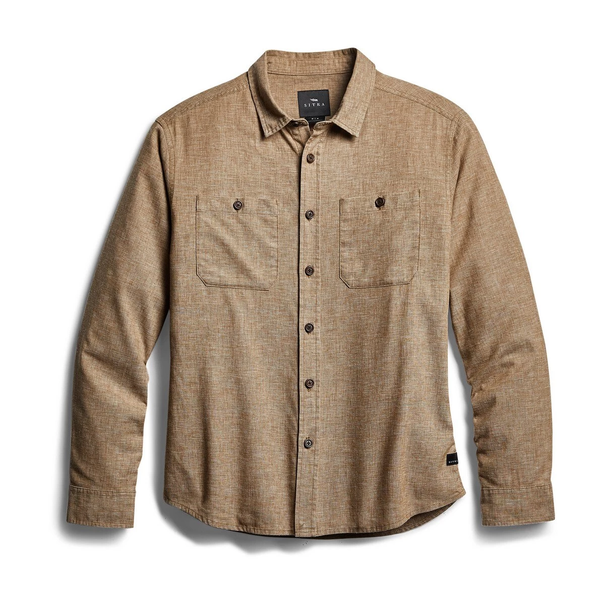 Sitka Ambary Long Sleeve ShirtYour date approved, go-to button-down. Made from hemp, which has four times the tensile strength of cotton, the Ambary is a rugged yet stylish shirt that will be a staple of your wardrobe for years to come.FEATURES & SPECSRegular Fit53% hemp, 44% recycled polyester, 3% elastane (4.6 oz. fabric)Fabric naturally wicks moisture and prevents odorChest pocket stores essentialsNatural wood buttonsImportedFIT Product is Standard Fit, designed to be layered for versatility.