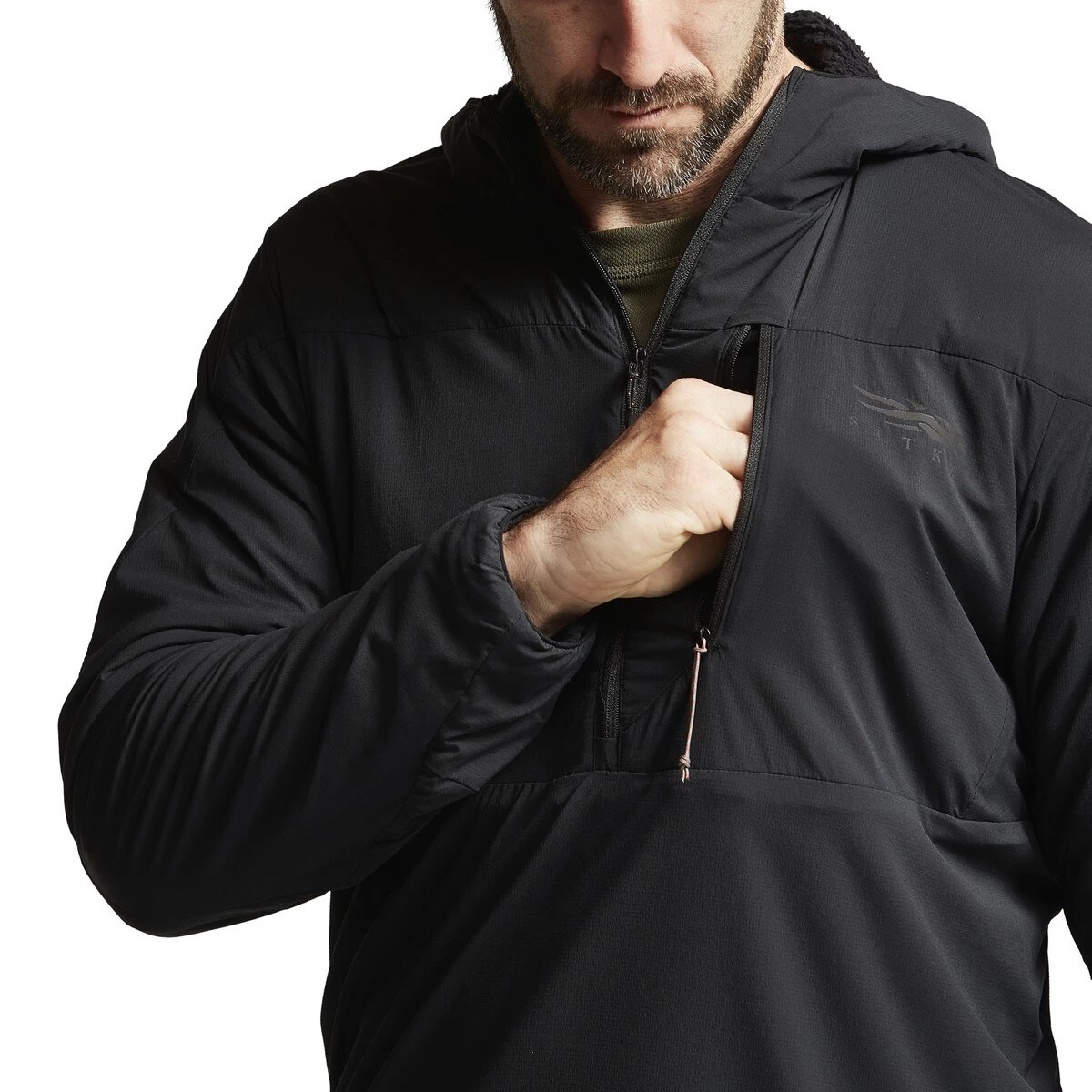 Sitka Ambient HoodyThe Ambient Hoody is everything we like in a mid-layer insulation piece — versatile, packable and durable, but adapts to changing weather conditions and levels of activity. Utilizing low-bulk PrimaLoft® Evolve active insulation, this half-zip pullover hoody delivers plenty of warmth when you’re still, breathes well and manages moisture in active situations and dries quickly if it gets wet. This technical hoody is ideal under a shell during cold weather hunts, on its own during brisk spring and fall evenings in camp, or tossed into your pack for summertime backpacking trips into the high country.20D ripstop nylon fabric is built to take a beating4-way stretch nylon panels allow plenty of mobility100 grams post-consumer recycled PrimaLoft® Evolve active insulation for breathable low-bulk warmthMechanical stretch enables a wide range of motionSculpted hood won’t obscure peripheral visionDurable water repellent finish sheds moisture and keeps fabric from wetting outHalf-zip pullover design for comfort and easy layeringTotal weight: 13 oz.