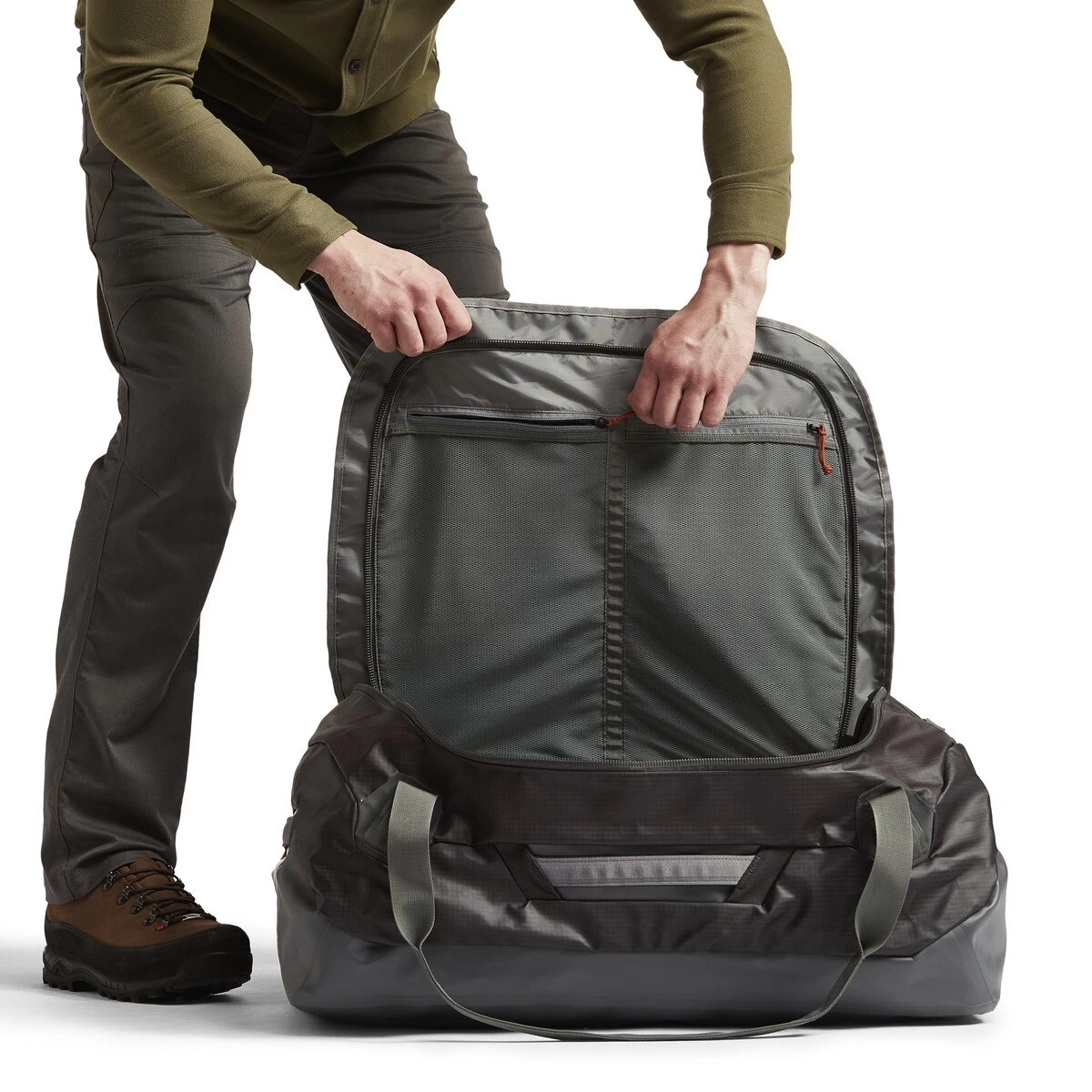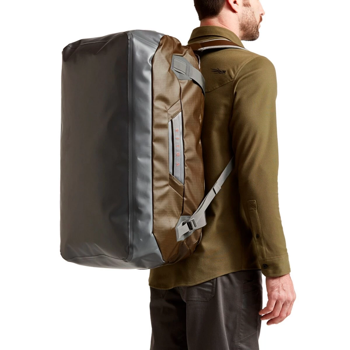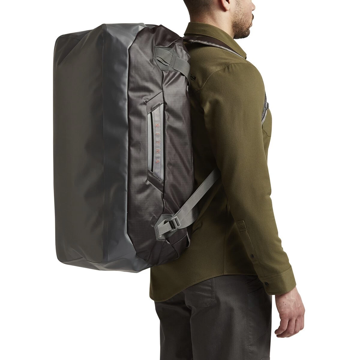 Sitka Drifter Duffel 75LThe Drifter 75 Liter duffle has enough room for your SITKA system and then some. Rugged 150D TPU coated rip-stop fabric in the main body and a water-proof 450D welded TPU coated rip-stop floor assure your gear is protected from the elements and the airlines. Removable shoulder straps provided for easy carry through airports and into the field. Four side and one top carry handle provide for multiple lash points on horse trips or pulling from the back of a float plane. Measurements: L: 25 in., W: 13.5 in., H: 12 in.Welded & Waterproof Bathtub Floor: Highly water resistant YKK Internal & External Zippered Pockets: Located on the top lid and one zippered pocket inside the main bag 4 Side Handles & 1 Top Carry Handle Removable Back Pack Straps Imported