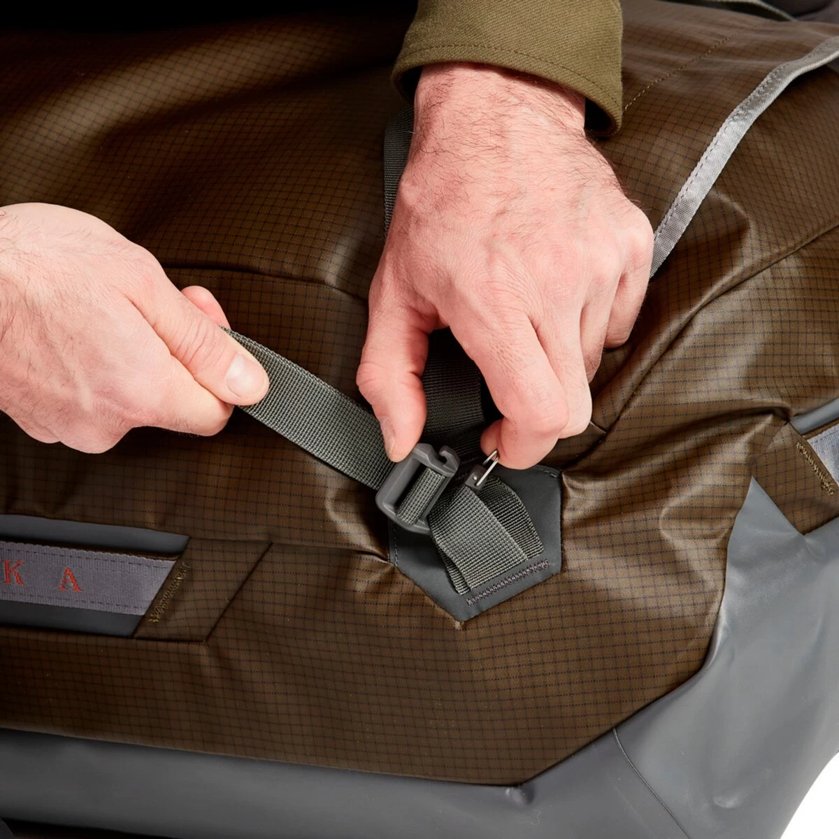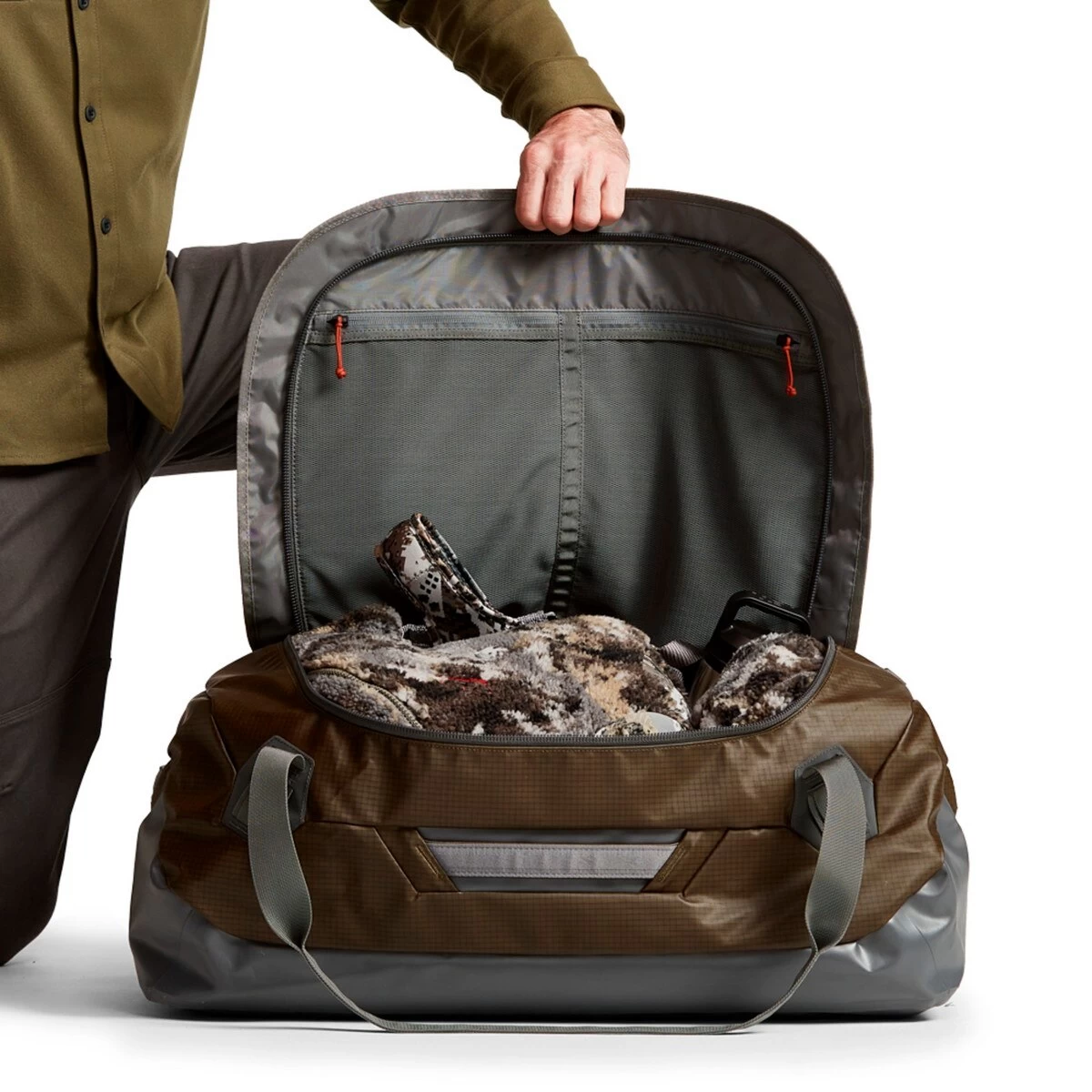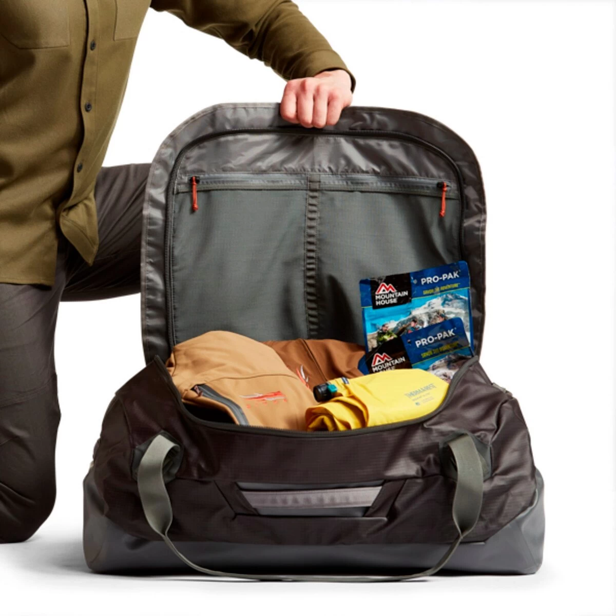 Sitka Drifter Duffel 75LThe Drifter 75 Liter duffle has enough room for your SITKA system and then some. Rugged 150D TPU coated rip-stop fabric in the main body and a water-proof 450D welded TPU coated rip-stop floor assure your gear is protected from the elements and the airlines. Removable shoulder straps provided for easy carry through airports and into the field. Four side and one top carry handle provide for multiple lash points on horse trips or pulling from the back of a float plane. Measurements: L: 25 in., W: 13.5 in., H: 12 in.Welded & Waterproof Bathtub Floor: Highly water resistant YKK Internal & External Zippered Pockets: Located on the top lid and one zippered pocket inside the main bag 4 Side Handles & 1 Top Carry Handle Removable Back Pack Straps Imported