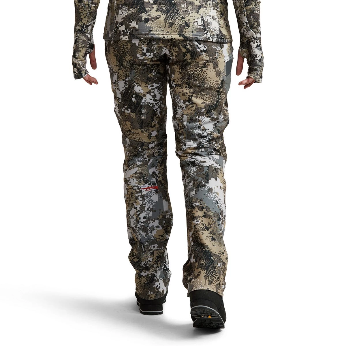Sitka Women’s Cadence Hunting Pants. The versatile and comfortable Cadence Pant is constructed from an ultralight 4-way stretch Polyester textile that achieves featherweight durability. An offset waist button reduces bulk and bunching while utilized as a layer, and articulated patterning and stretch combine for optimized mobility as outerwear in early fall hunts or as a mid-layer well into late season. The Cadence Pant is the Women’s waterfowl hunting go-to pant for all-season use.